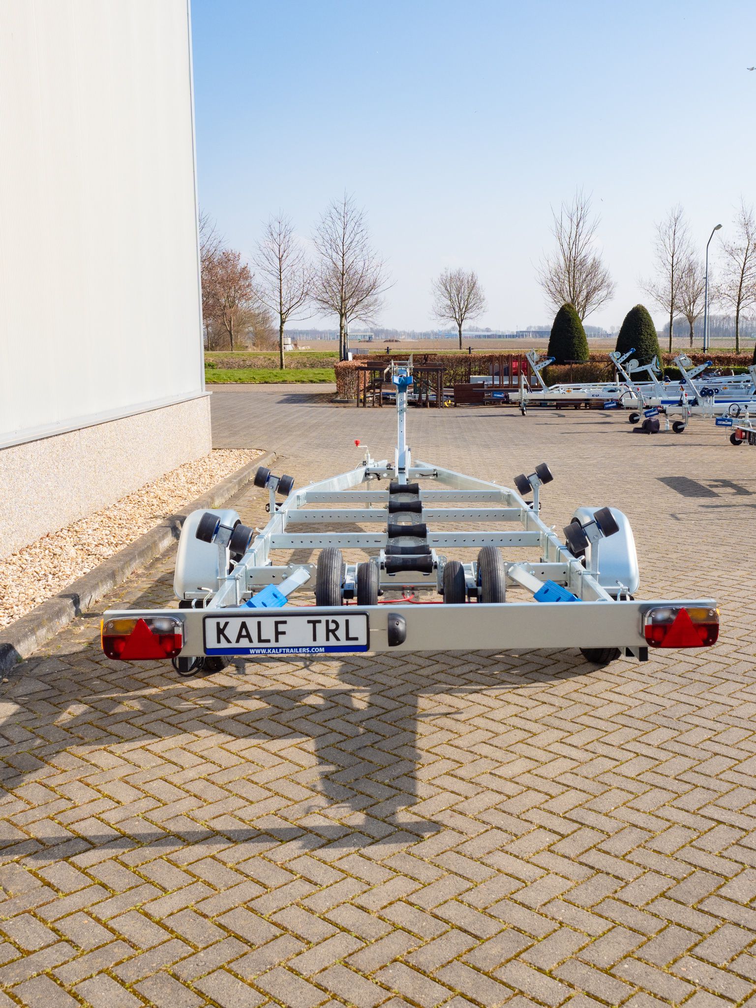 De trailer op de foto is uitgevoerd met boeggeleiding 4 wiel en een bun uitsparing (voor motor in de bun). Beiden zijn optioneel.